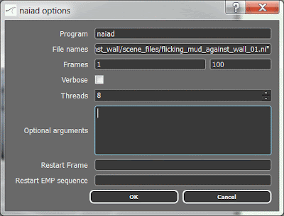 You can choose to run Naiad on any file from here, so you don’t even need to have your file open.  I’m sure various studios have this linked into the render farms so you could really speed up your sim time.