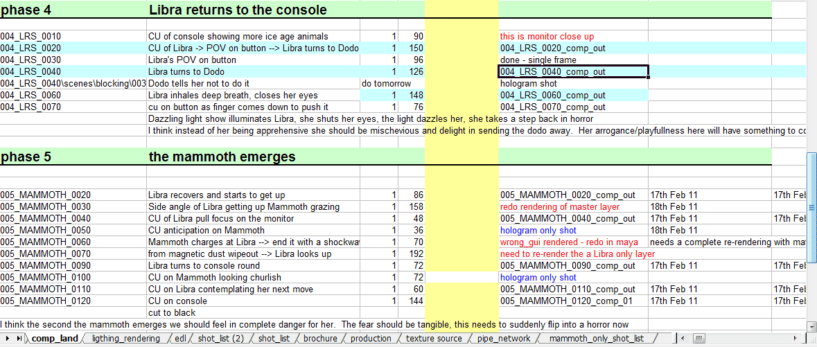 The timings of the sequences were subject to change to allow the characters appropriate time for their animation.