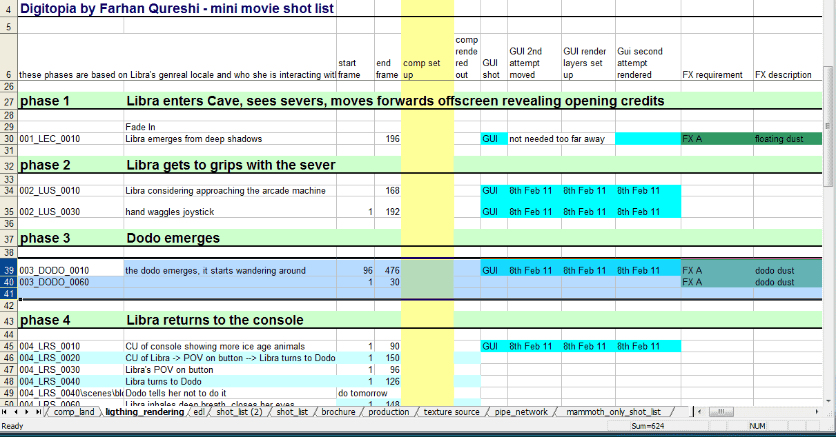 For this post I will show how I progressed through all the various stages from storyboard to post to complete the film Digitopia: Discover Me, the processes I employed and how I managed the whole process.