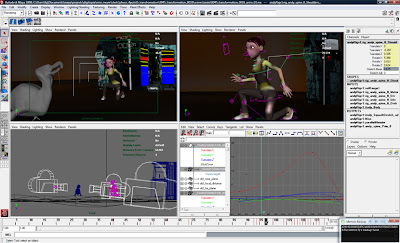 The characters were left largely unanimated while I blocked all the compositions, camera movements and timings in