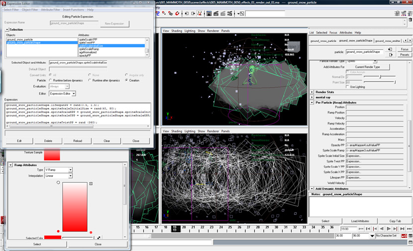 The use of expressions and ramps replaces keyframing used in traditional animation
