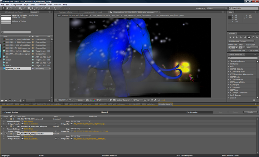 I decided to leave effects to the end, the edit needed to be locked down at this stage.