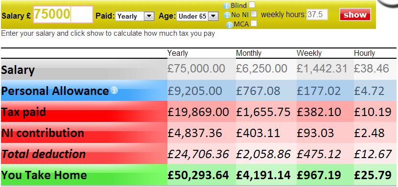 | Fig1. Take home £35,793 when you earn £50,000 |