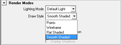 Fig 7c. Here you can set the draw style, render your particles as points or smooth shaded (i.e. for sprites), you can also render out the whole thing as a wire frame.
