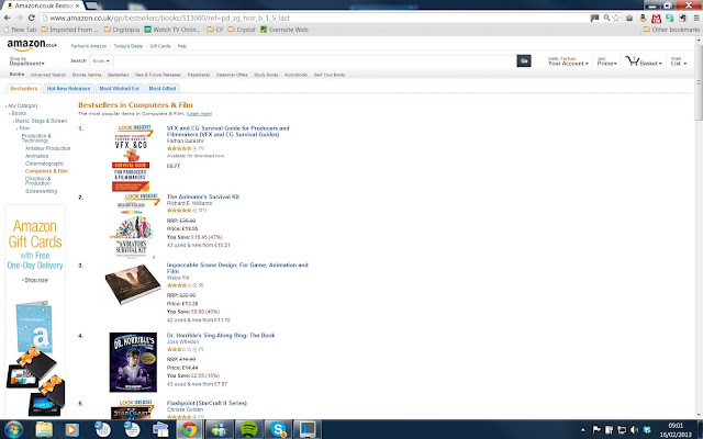 | Fig 4. VFX and CG for Producers and Filmmakers number 1 bestseller in ‘Web Graphics’ category on Amazon, 16th Feb 2013 |