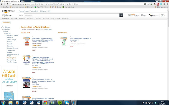 Fig 4. VFX and CG for Producers and Filmmakers number 1 bestseller in ‘Web Graphics’ category on Amazon, 16th Feb 2013 |