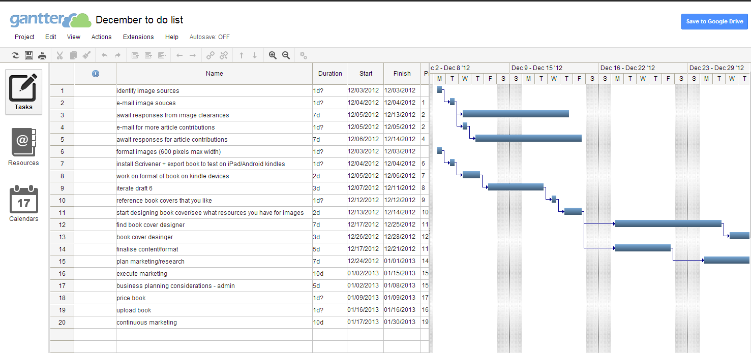 I used a gant chart from google docs to plan out all the upcoming stages.