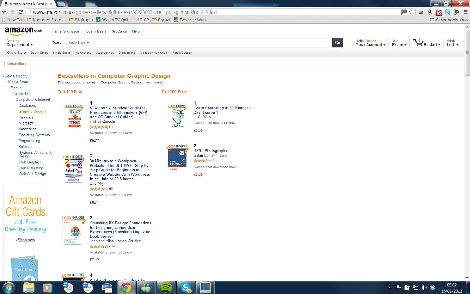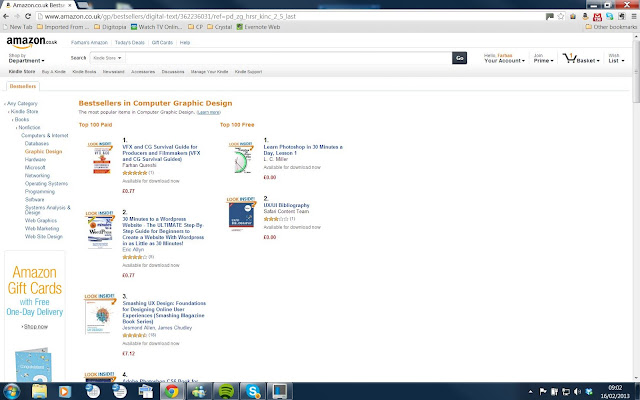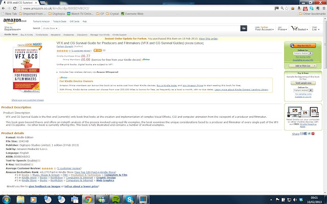 Fig 3. VFX and CG for Producers and Filmmakers number 1 bestseller in ‘Graphic Design’ category on Amazon, 16th Feb 2013 |
